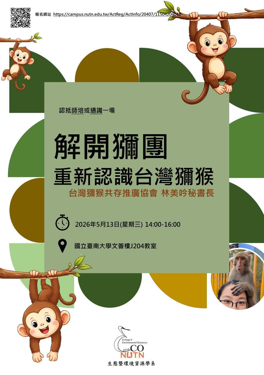 活動報名:https://campus.nutn.edu.tw/ActReg/ActInfo/20407/11504204010