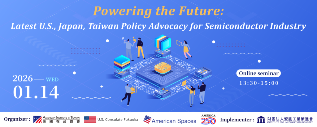 資訊工業策進會受AIT美國在台協會委託,於中華民國115年1月14日(三)合作辦理「賦能未來:美日臺半導體產業最新政策倡議」線上論壇。