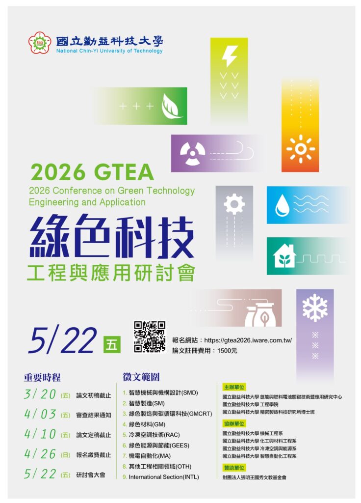 國立勤益科技大學工程學院辦理2026GTEA綠色科技工程與應用研討會