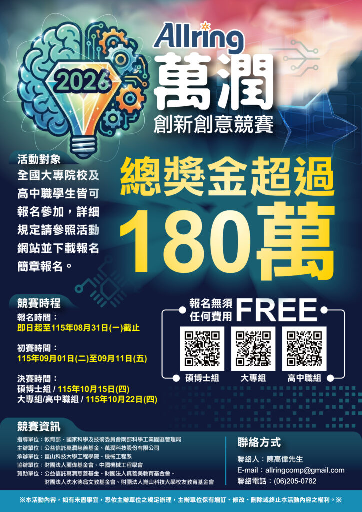 崑山科技大學辦理「萬潤 2026 創新創意競賽-(大專組)」